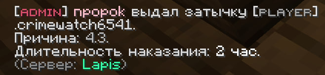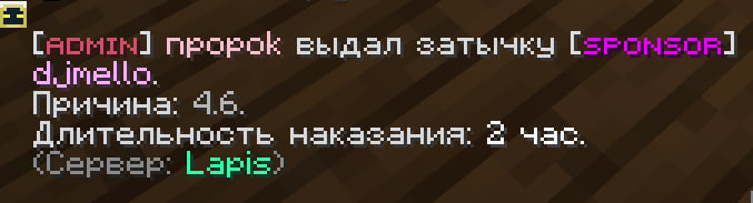 npopok Здравствуйте, игроки были наказаны, однако вам так же был выдан мут за 4.6, так как вы неуважительно относились к нарушителям Рассмотрено
