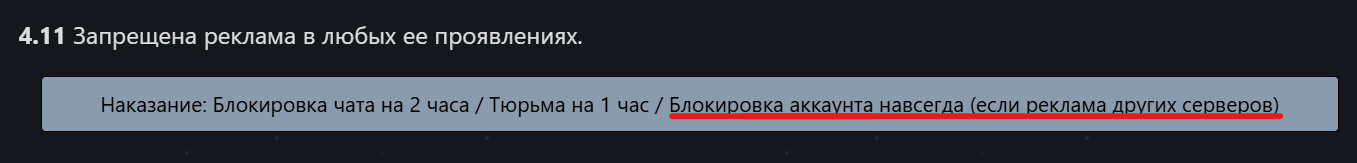 vikaa2008 Ваш игровой ник: vikaa2008 Игровой ник администратора: I_Ne_SHITH_ Суть жалобы: данный администратор выдал некоректный бан Скриншот наказания: на данном скриншоте видно что я никаким образом не реклалим другой серв, но упоминание было, а за это максимум мут 2 часа либо же тюрьма на 1 час, прошу принять меры