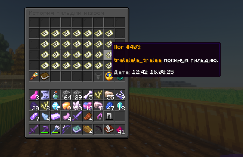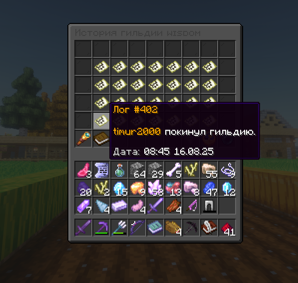 Velyasik322 1.Ваш игровой ник: [Velyasik322] 2.Игровой ник нарушителя: [timur2000, tralalala_tralaa] 3.Суть жалобы: [игрок нарушил правило 3.17, соклановцы wisdom [timur2000, tralalala_tralaa] украли из сундуков практически все содержимое на одном складе, и все содержимое другого склада, а также убили всех животных кроме козлов в своих корыстных целях] 4.Доказательства: скриншоты из игры