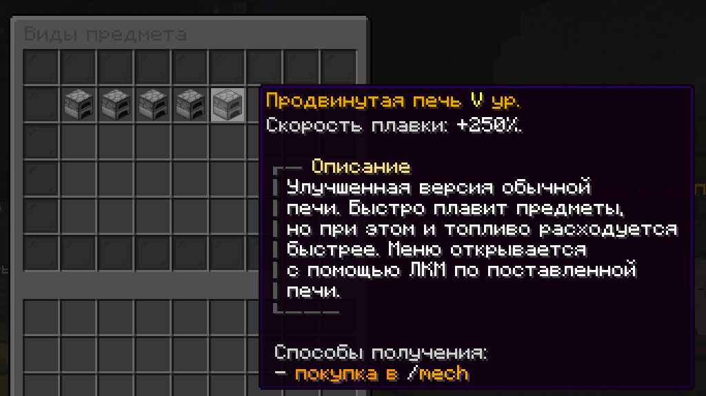 Продвинутые печи, коптильни и плавильни (приобретаются в /mech)