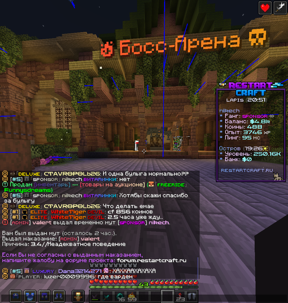 nikech Ваш игровой ник: [nikech] Игровой ник администратора: [valert] Суть жалобы: [3.5 Я не понимаю, в чём проблема. Я просто общался с людьми. Если у игроков есть претензии, я готов понести наказание. Если нет, то прошу меня понять и простить.] Скриншот наказания: скриншот прикрепите к ![сообщению]